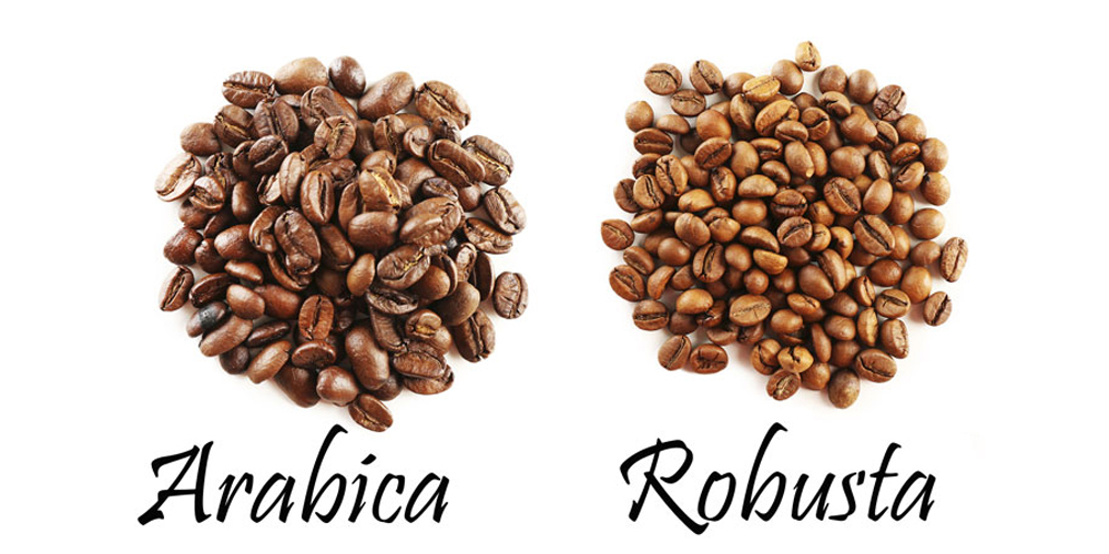 Ngược lại, hạt cà phê Robusta có hình tròn, kích thước lớn hơn và phần rốn hạt thường lồi hơn. Màu sắc của hạt Robusta khi còn tươi là màu xanh lục đậm và chuyển sang màu nâu nhạt khi được rang. Hạt Robusta có hàm lượng caffeine cao hơn, khoảng 2,5% trọng lượng hạt, mang lại cảm giác tỉnh táo và sảng khoái.